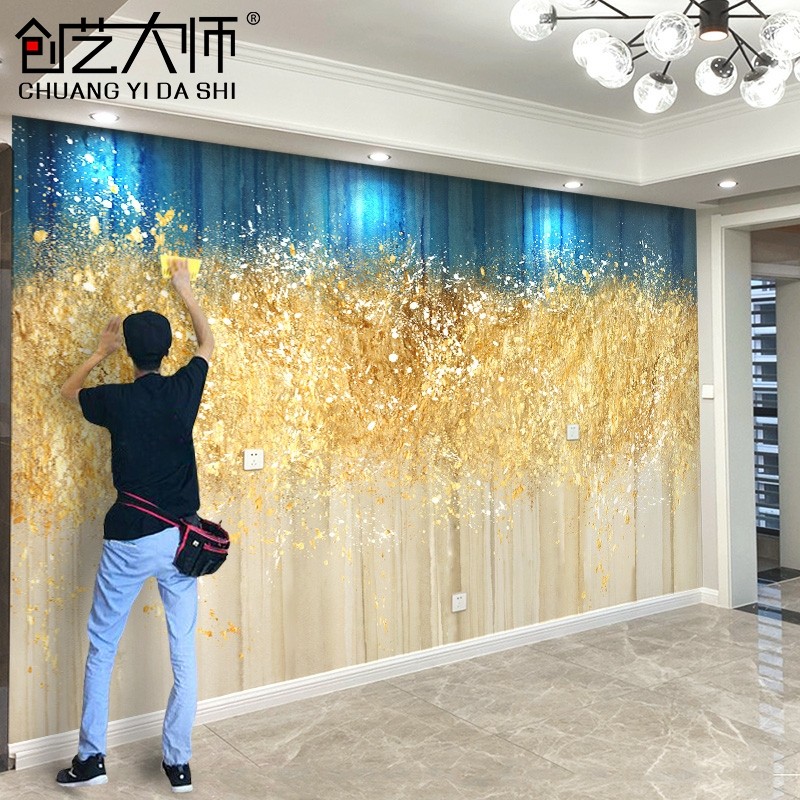 轻奢壁布电视背景墙2025新款壁纸客厅艺术金色沙发影视墙壁画装饰