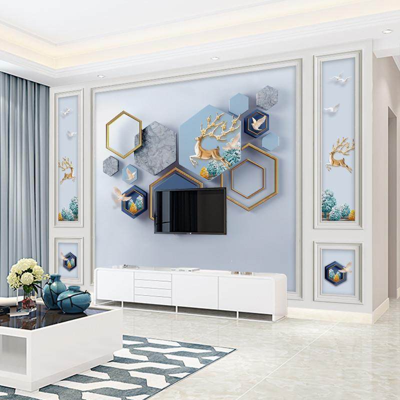 电视背景墙壁纸定制现代简约w几何麋鹿影视墙壁画装饰客厅墙布壁