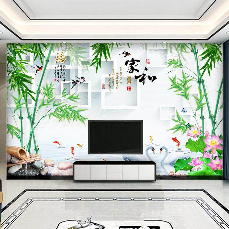 8D翠竹现代简约客厅电视背景墙壁纸影视墙壁画5D立体墙纸墙布大气