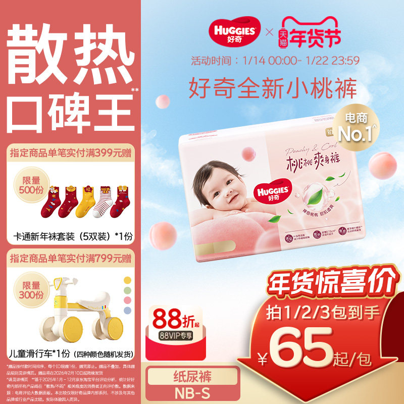 好奇小桃裤铂金装纸尿裤NB码/S码婴儿尿不湿透气亲肤官方正品