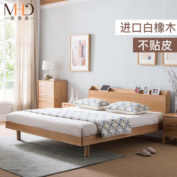 全纯实木床橡木双人床北美白橡原木大床小户型北欧简约排骨架主卧