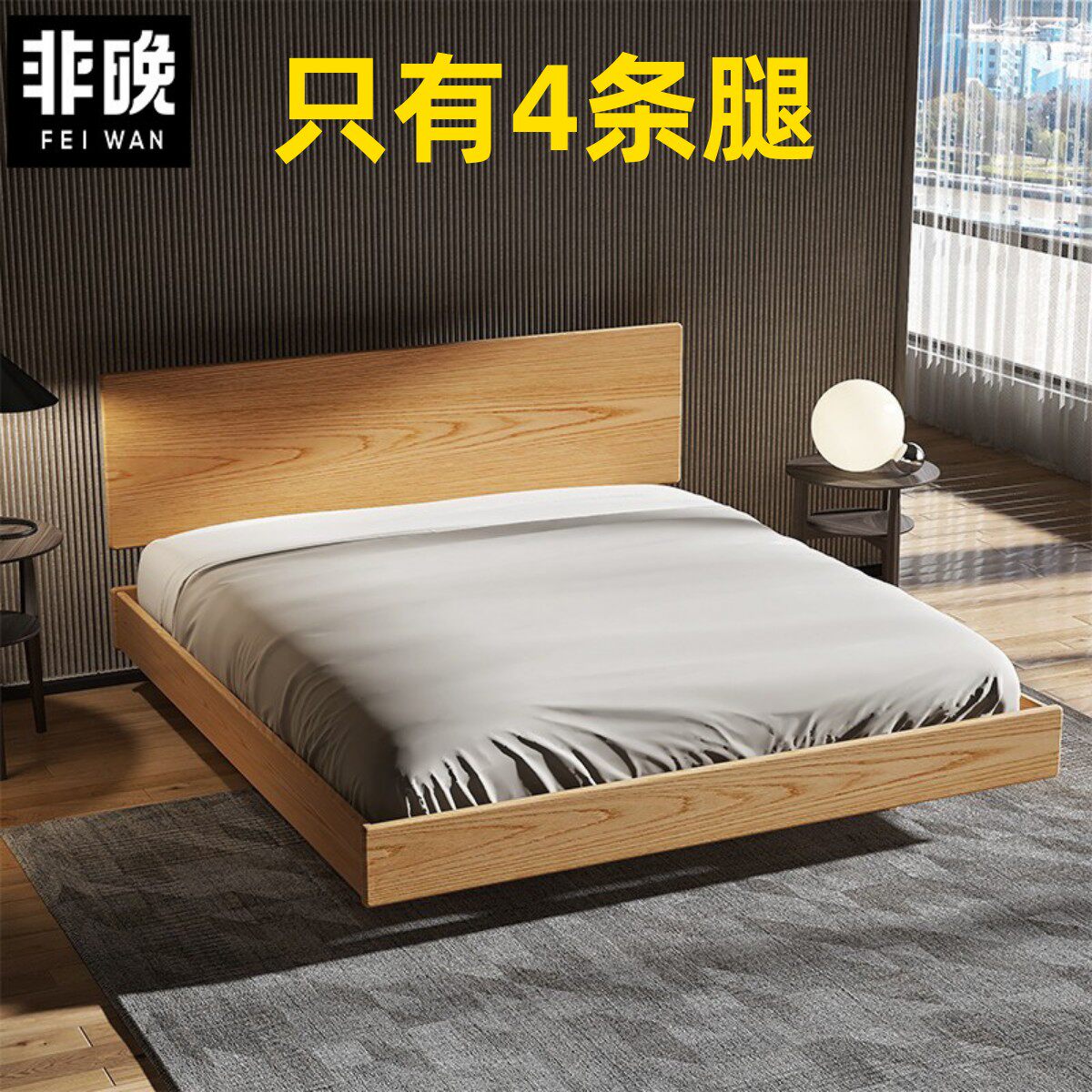 地台床无床头床现代简约实木床白橡木床架大户型悬浮日式榻榻米床