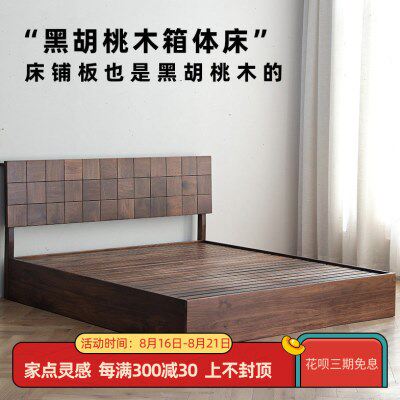 储物床体木箱现代简约黑胡桃木樱桃大床高箱床2.白橡木床北欧2米