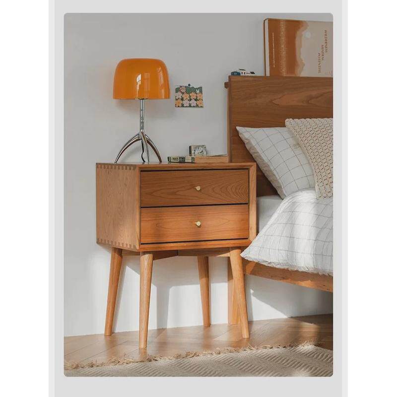 北欧床头柜实木樱桃木白橡木床边柜原木色卧室小储物柜带抽屉斗柜