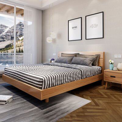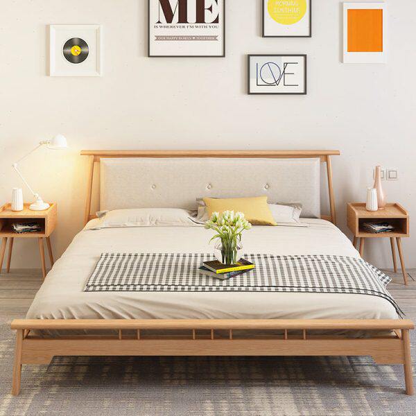朴室 侘寂风简约北欧日式白橡木布艺现代无床头双人床实木床1米5