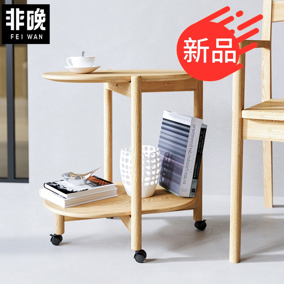 可移动茶几推车全实木活动边几带B轮白橡木床头推桌日式木质置物