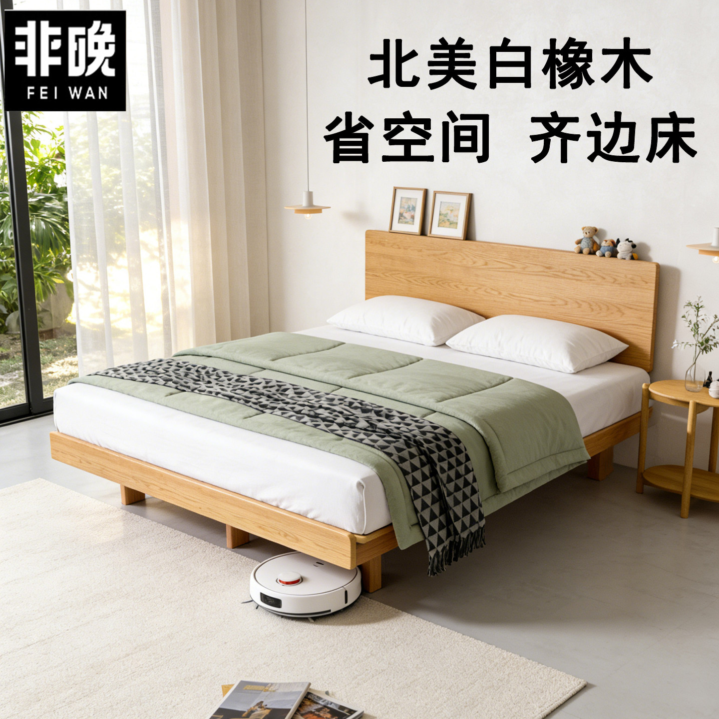 非晚家具白橡木床米现代简约全1.8北欧实原木床1.5木床双人床卧室