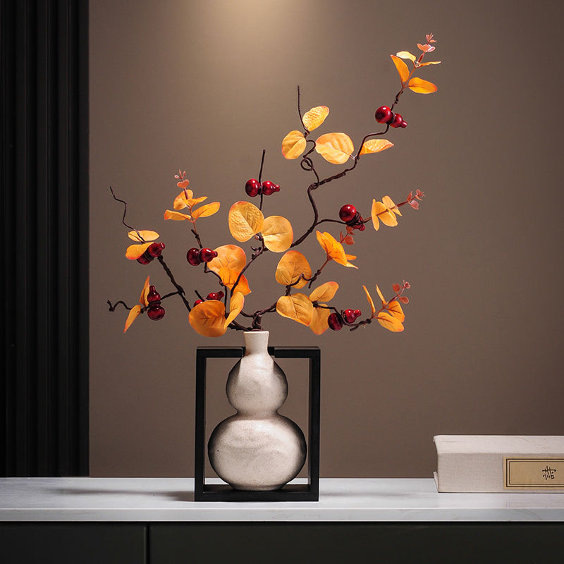 新中式招财葫芦摆件红色陶瓷家居玄关茶桌面装饰干花插花水培花瓶
