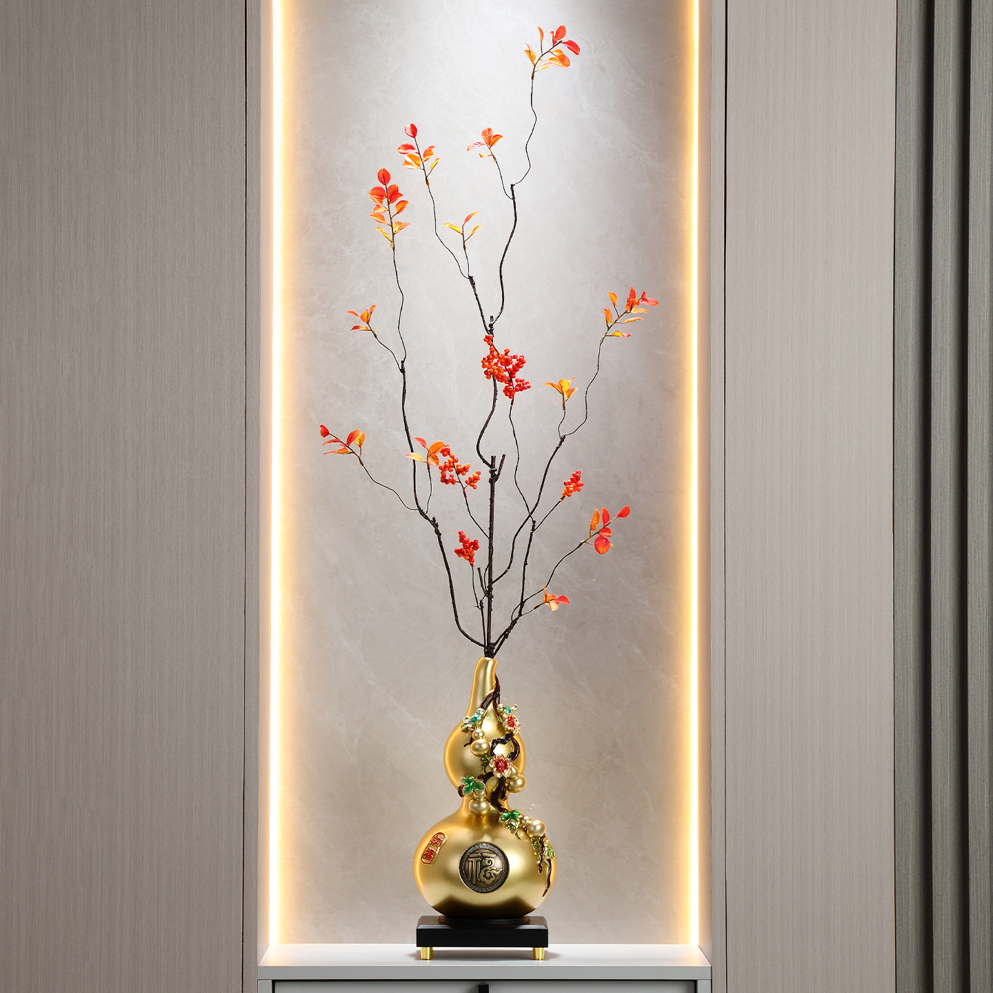 逅里 叠叠葫芦摆件 招财玄关布置 新家乔迁礼物 红色高级新年装饰