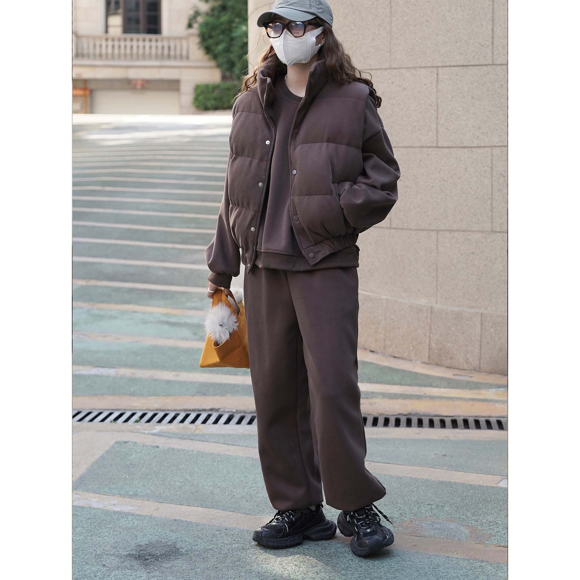 2025秋冬新款时尚韩版连帽开衫搭夹棉马甲搭阔腿裤加绒三件套女
