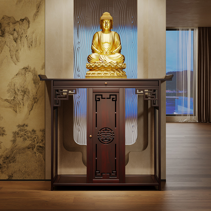 新中式佛龛供台供柜财神爷香案家用供奉带门供桌靠墙堂屋观音佛像