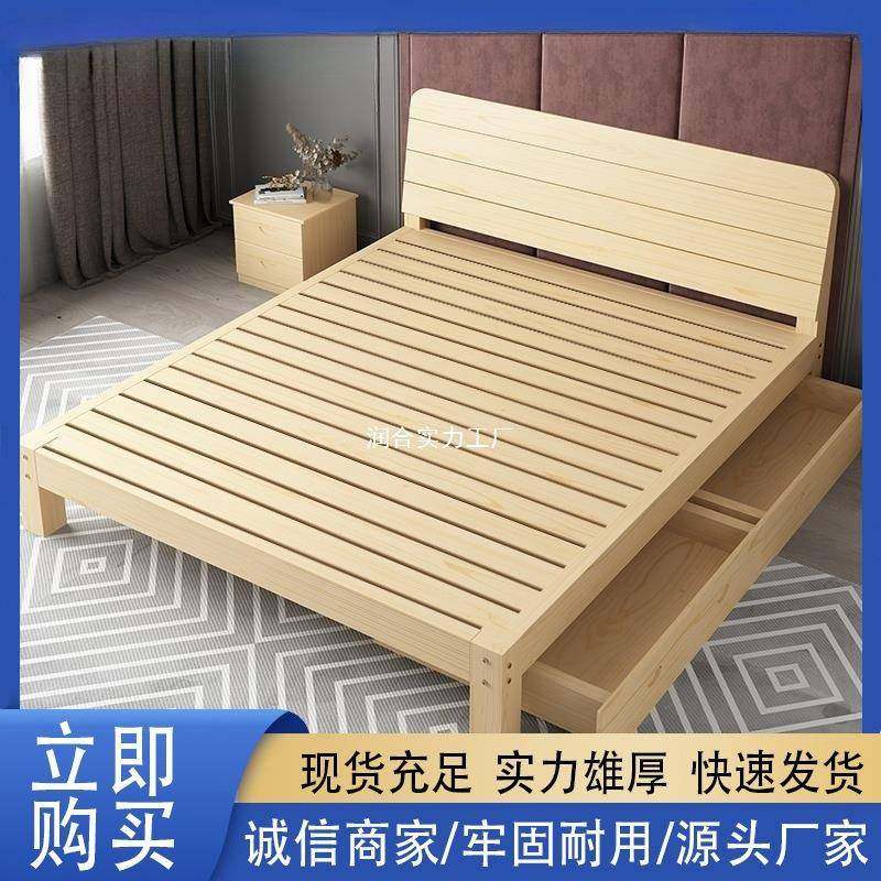实木床现代简约1.5米双人床主卧家用经济型出租房松木1.2单人床架