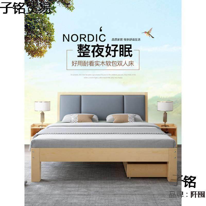 包安装北欧全实木床1.5米双人床主卧现代简约松木1.2经济型单人床
