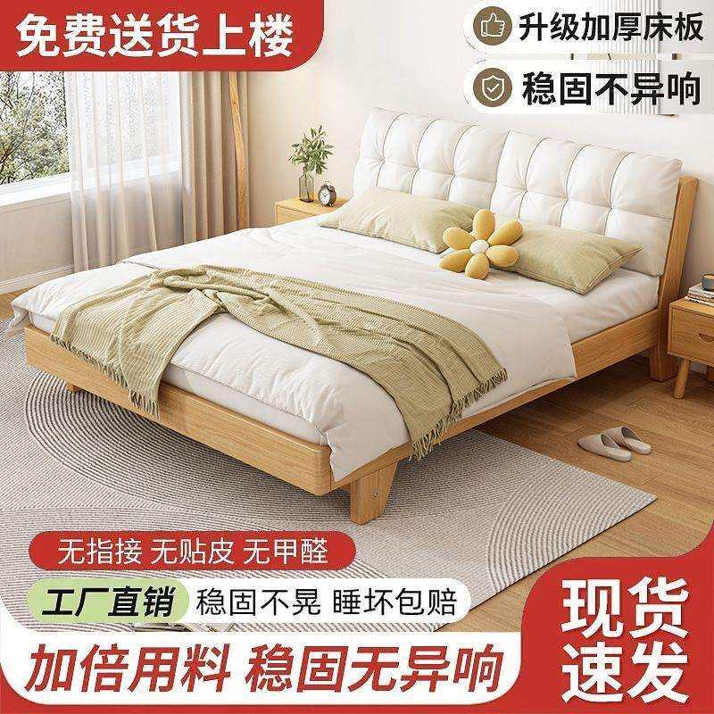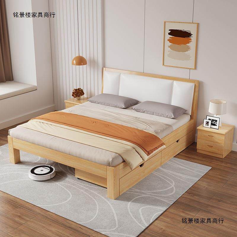 实木床现代简约1.8双人床经济型1.5米软包单人床架出租房松木1.2m