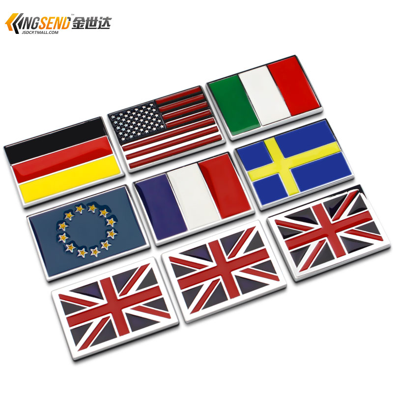 汽车车贴美国英国德国法国意大利瑞典国旗车标车身贴金属尾标装饰