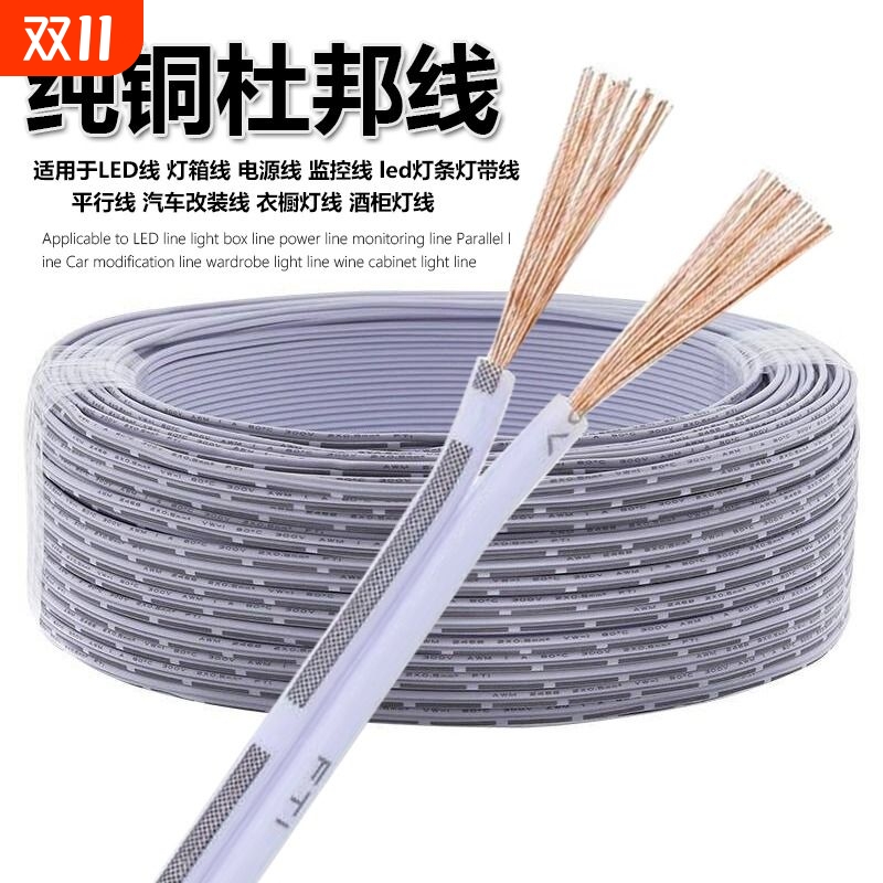 纯铜2P杜邦线白色竹节并线2芯0.5平方衣橱柜灯LED灯带电源延长线