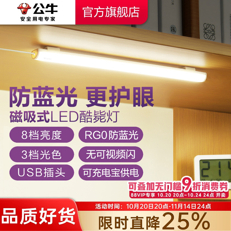 公牛学生宿舍LED酷毙灯磁吸附式学习专用护眼台灯橱柜书桌USB灯管