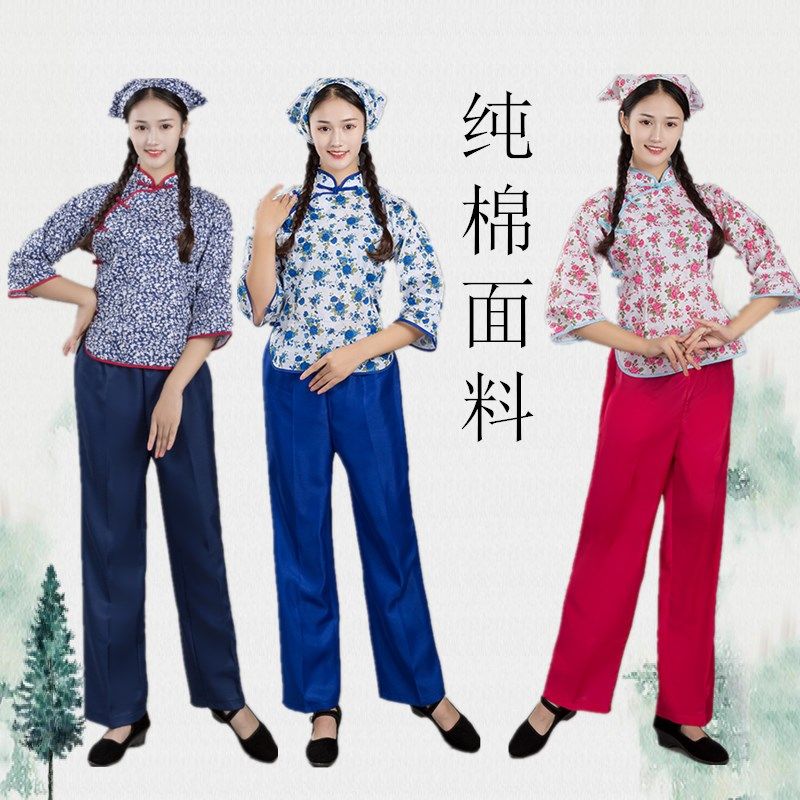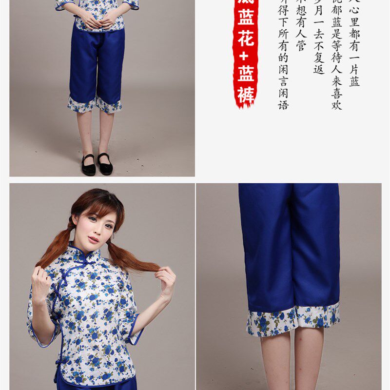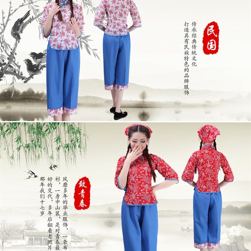 村姑演出服中老年秧歌服民国学生五四青年装碎花采茶女阿庆嫂服装