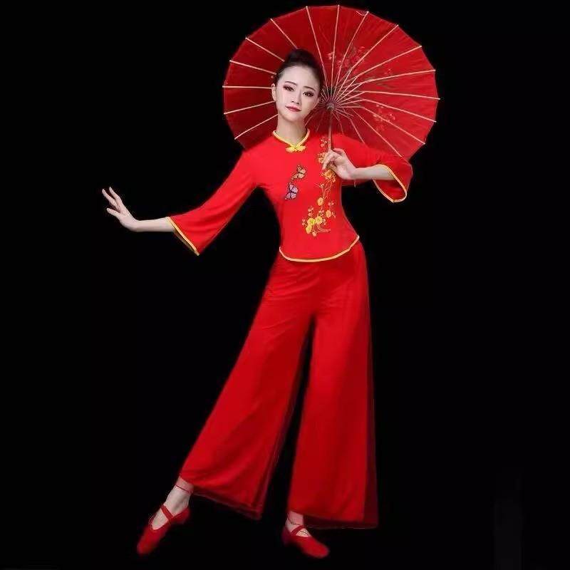 2025新款古典舞秧歌服扇子舞蹈服伞舞中老年广场舞服装艺考女飘逸