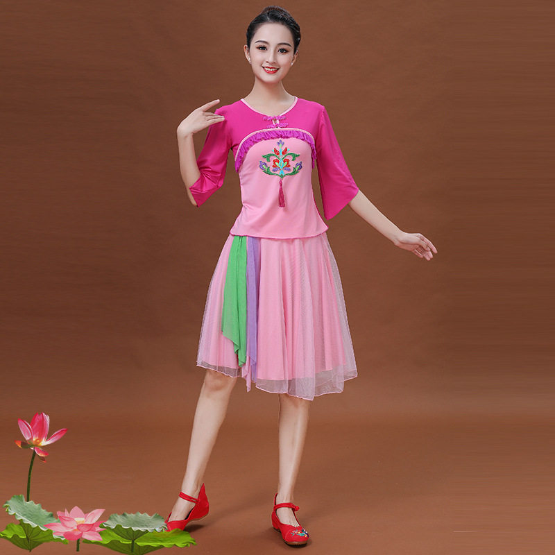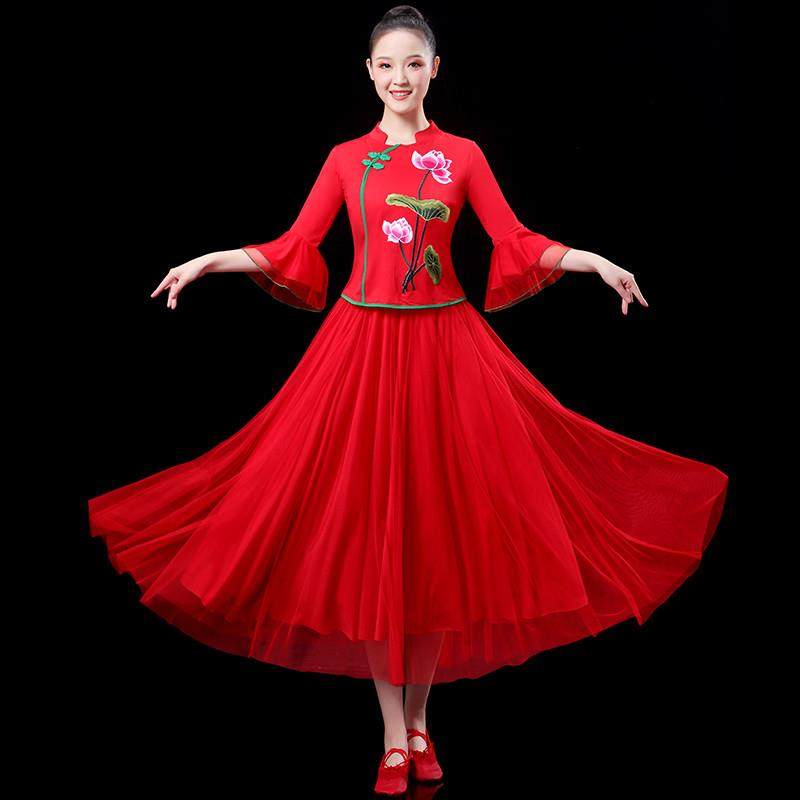 广场舞服装女成人套装中老年秧歌服中国风飘逸古典舞纱裙舞蹈服装