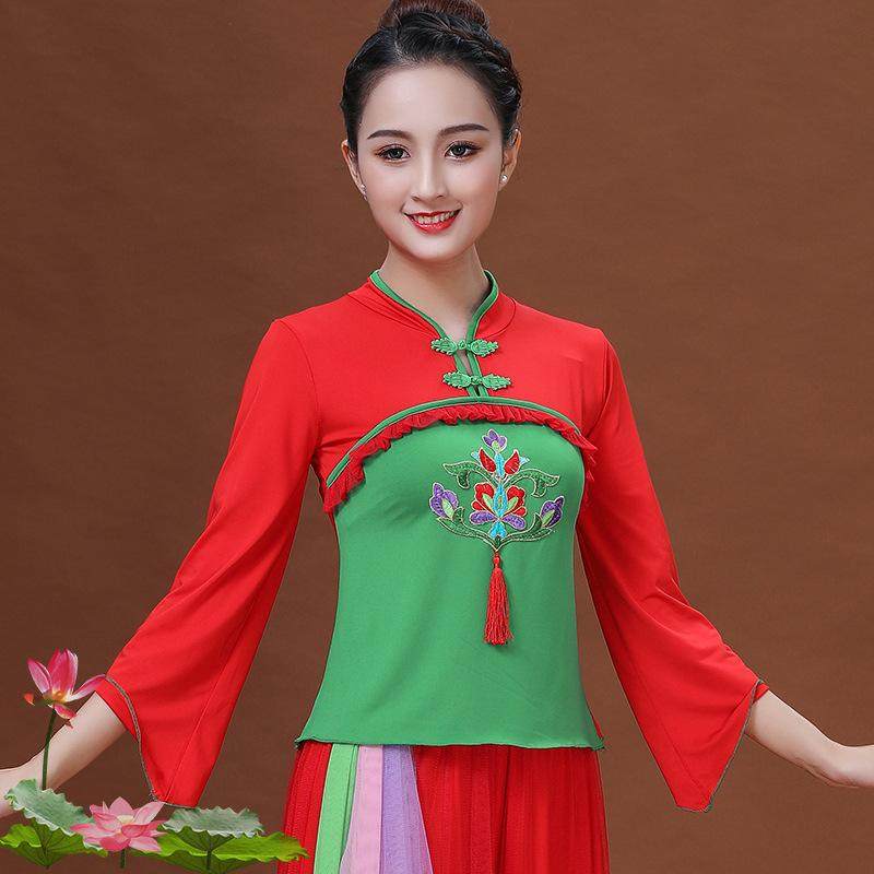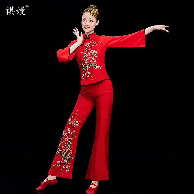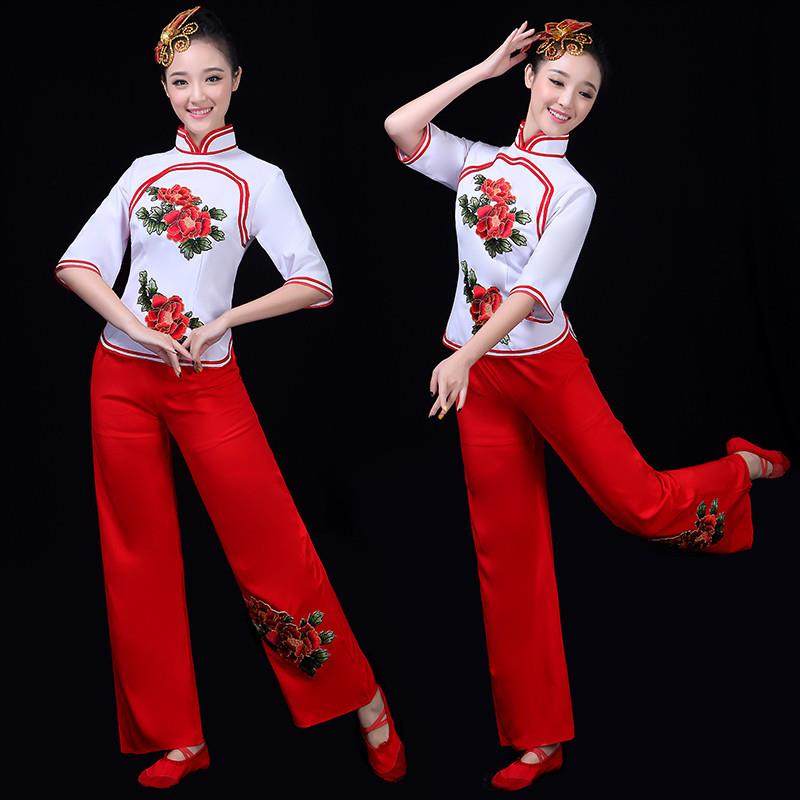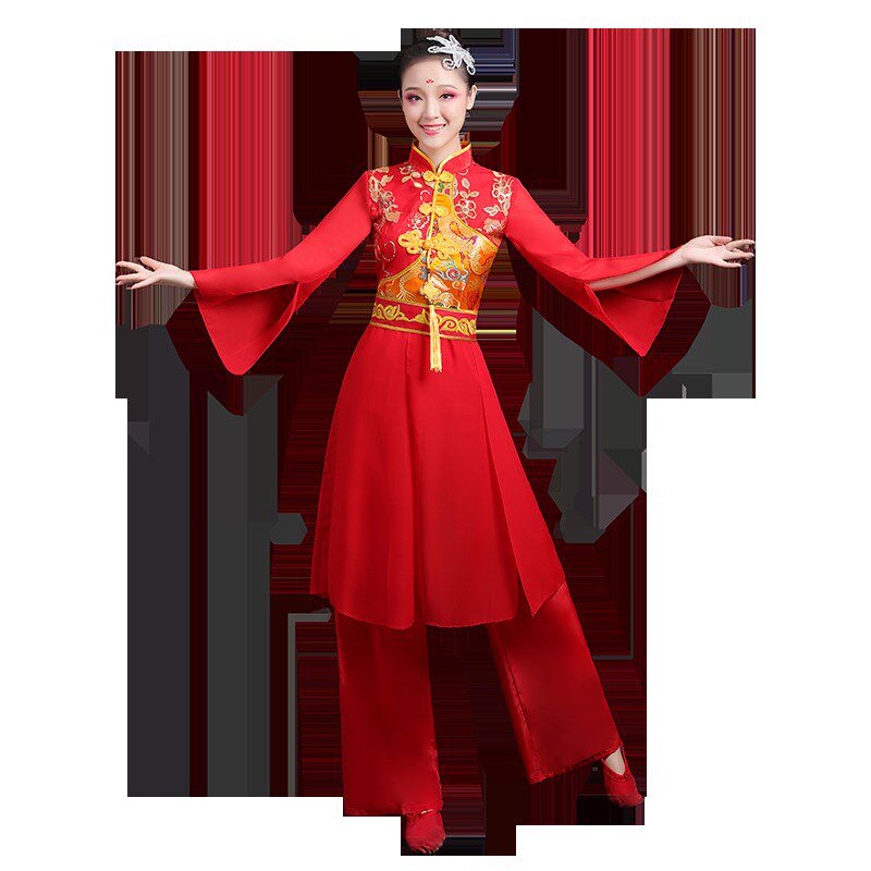 新款秧歌服女广场舞套装演出服中老年团体扇子舞蹈腰鼓民族风服装
