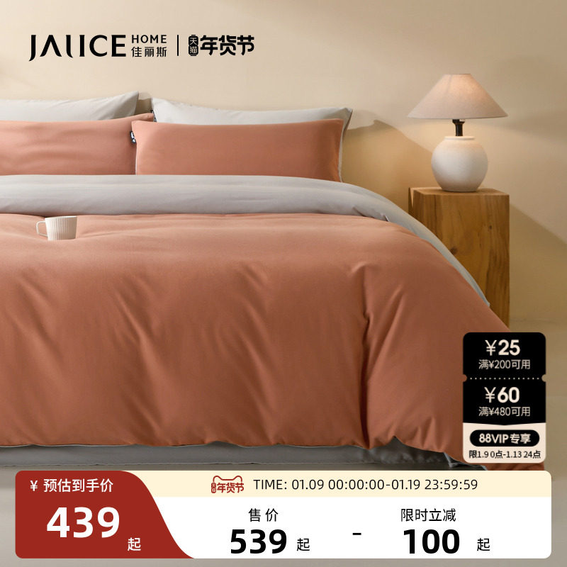 洁丽雅纯棉四件套100全棉被套床单风四季通用学生宿舍床上三件套
