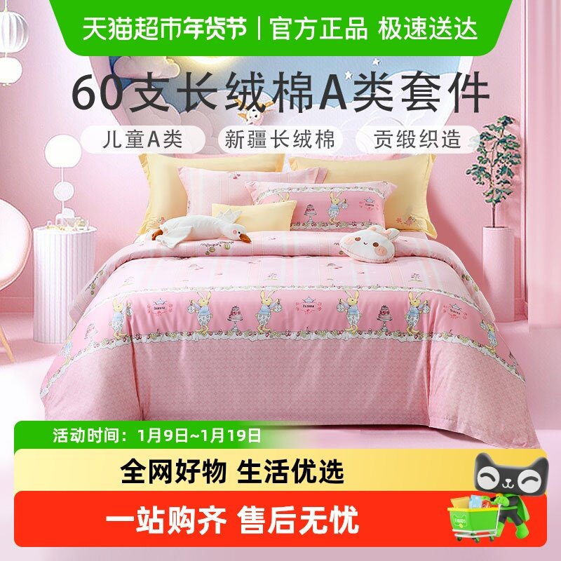 富安娜家纺60支长绒棉儿童纯棉四件套男女床单被套全棉床上三件套