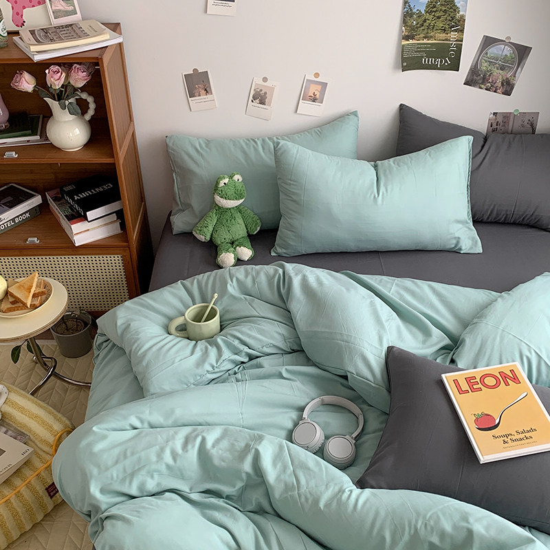 ins纯棉四件套全棉床上用品被套被罩床单床笠纯色宿舍单人4三件套