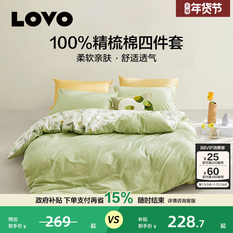 罗莱生活LOVO乐蜗全棉纯棉四件套小清新被罩学生宿舍床上三件套