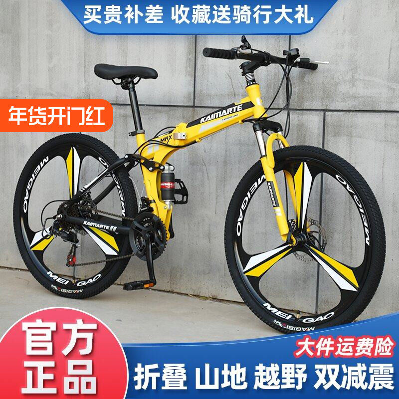 折叠山地车26寸24寸山地自行车前后双减震单车碟刹变速男女公路车
