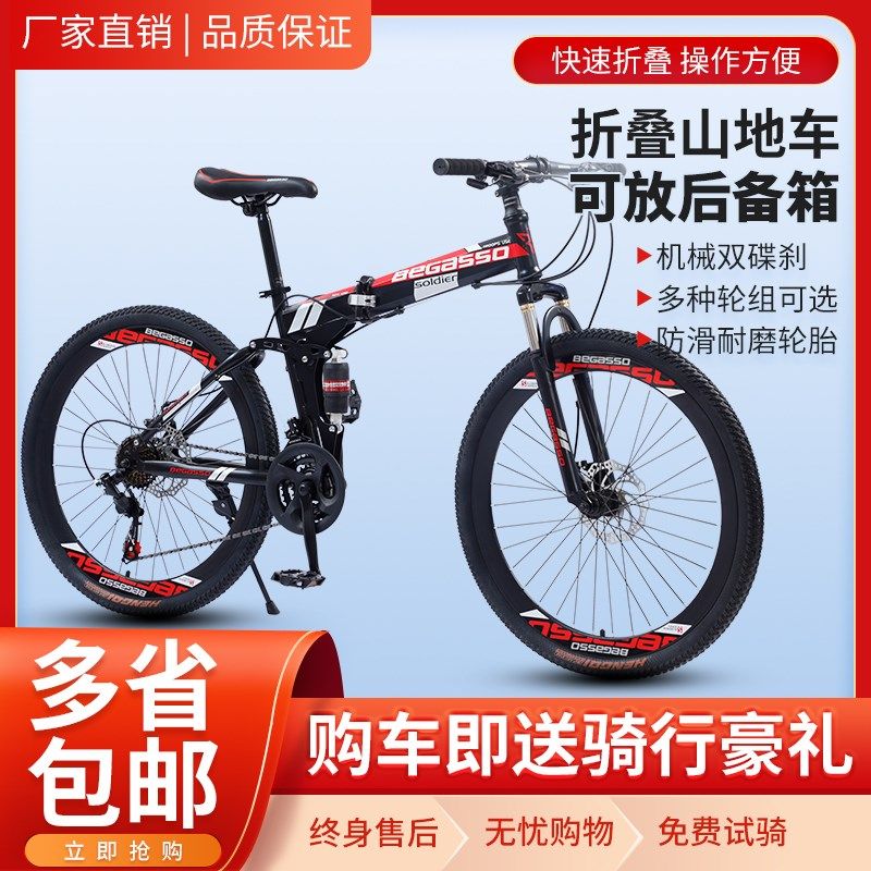 速发BeGa寸26车折叠自行车变速减震油碟刹山地车一体轮单ozxc