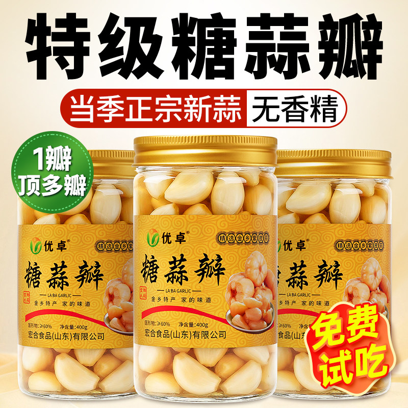香与酸甜糖蒜腌泡蒜甜蒜糖醋大蒜头自制农家蒜瓣下饭菜480g瓶装