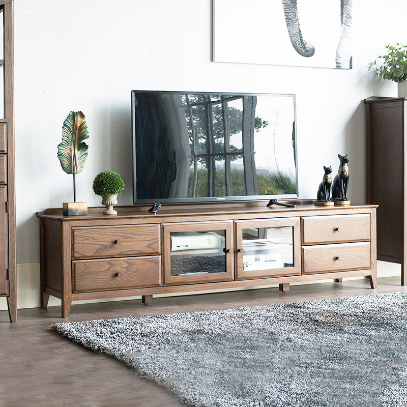 优木家具纯实木电视柜2米橡木电视柜1.8米四抽储物美式客厅家具