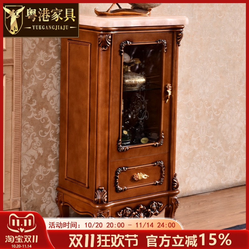 欧式酒柜 美式别墅客厅电视柜边柜角柜全实木复古橡木储物柜家具