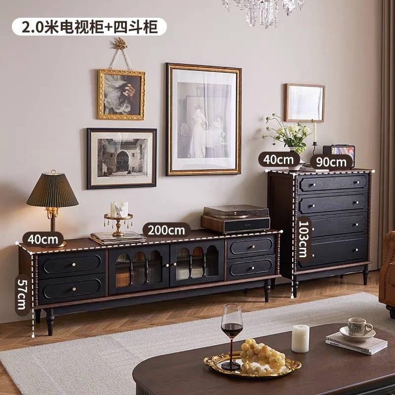 法式乡村客厅电视柜设计师玄关边柜小户型复古风美式橡木落地储柜