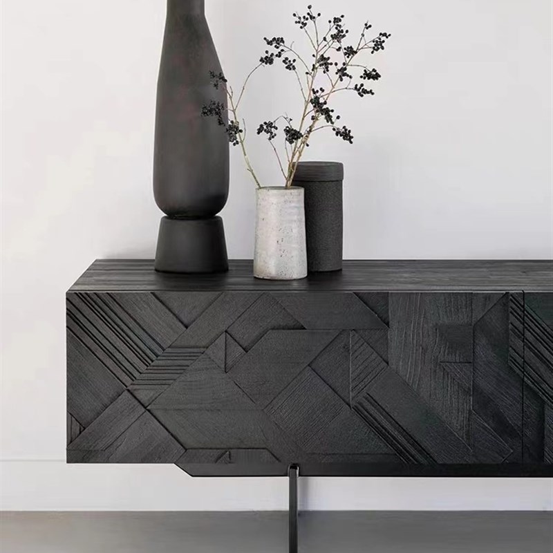 玖柒工坊美克art橡木威士忌电视柜 美式经典实木雕刻电视柜可定制