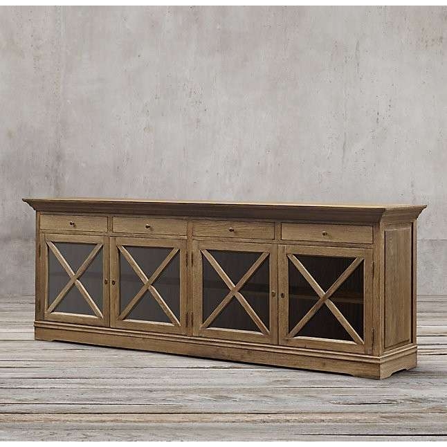 美式乡村实木四门电视柜Arhaus家具家用复古橡木玻璃门装饰储物柜