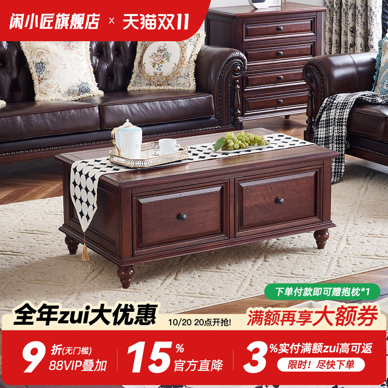 美式轻奢茶几电视柜组合客厅全实木欧式橡木长方形茶桌小户型家具