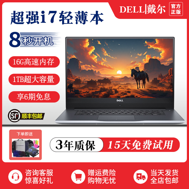 DELL戴尔笔记本电脑酷睿i7游戏本超薄商务办公轻薄本学生学习网课