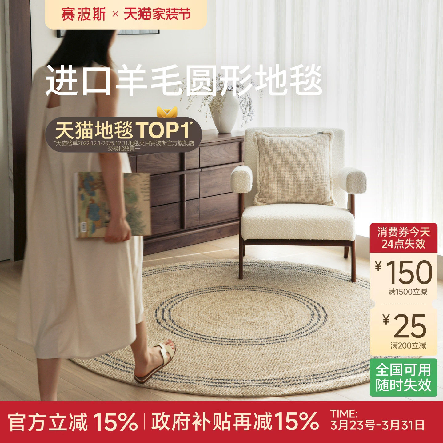 赛波斯年轮无胶圆形地毯复古高级感卧室客厅衣帽间书房椅子床边毯
