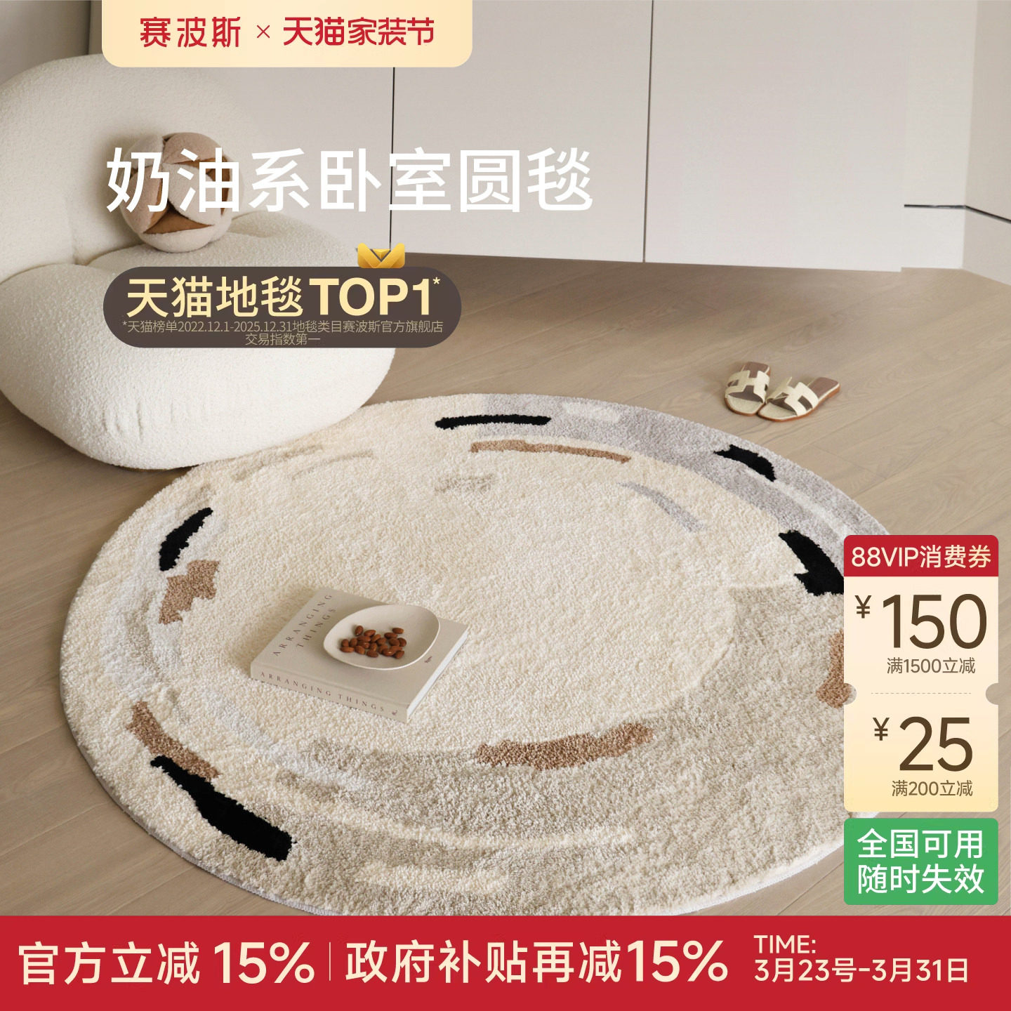 赛波斯流心卷圆形地毯奶油风柔软撸猫感卧室客厅房间椅子青山美宿