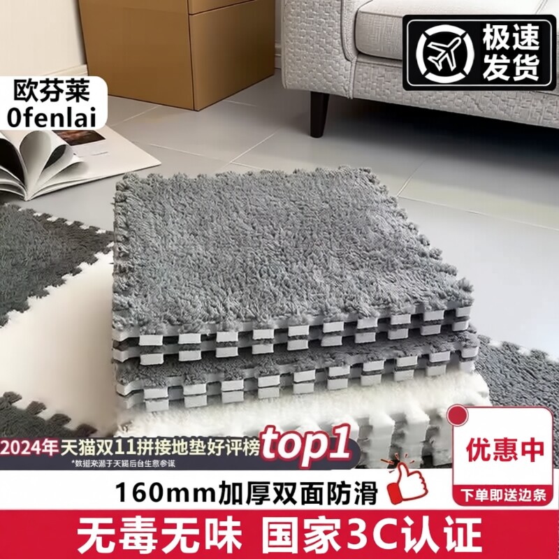 毛绒拼接地垫地毯卧室可拼接防滑加厚客厅全铺床边毯阳台垫子房间