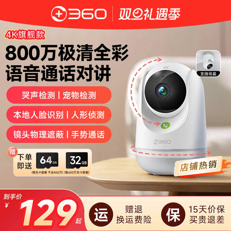 摄像头360度无死角监控家用手机远程无需网络高清夜视800万2025新
