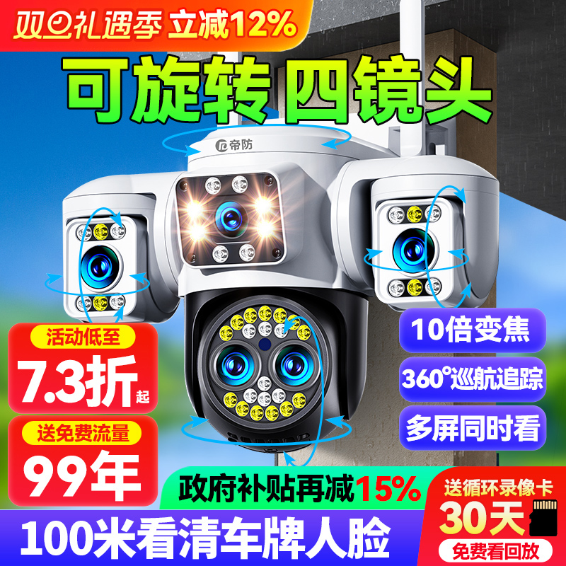 帝防摄像头无线手机远程监控器家用室外高清夜视360度无死角摄影