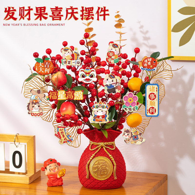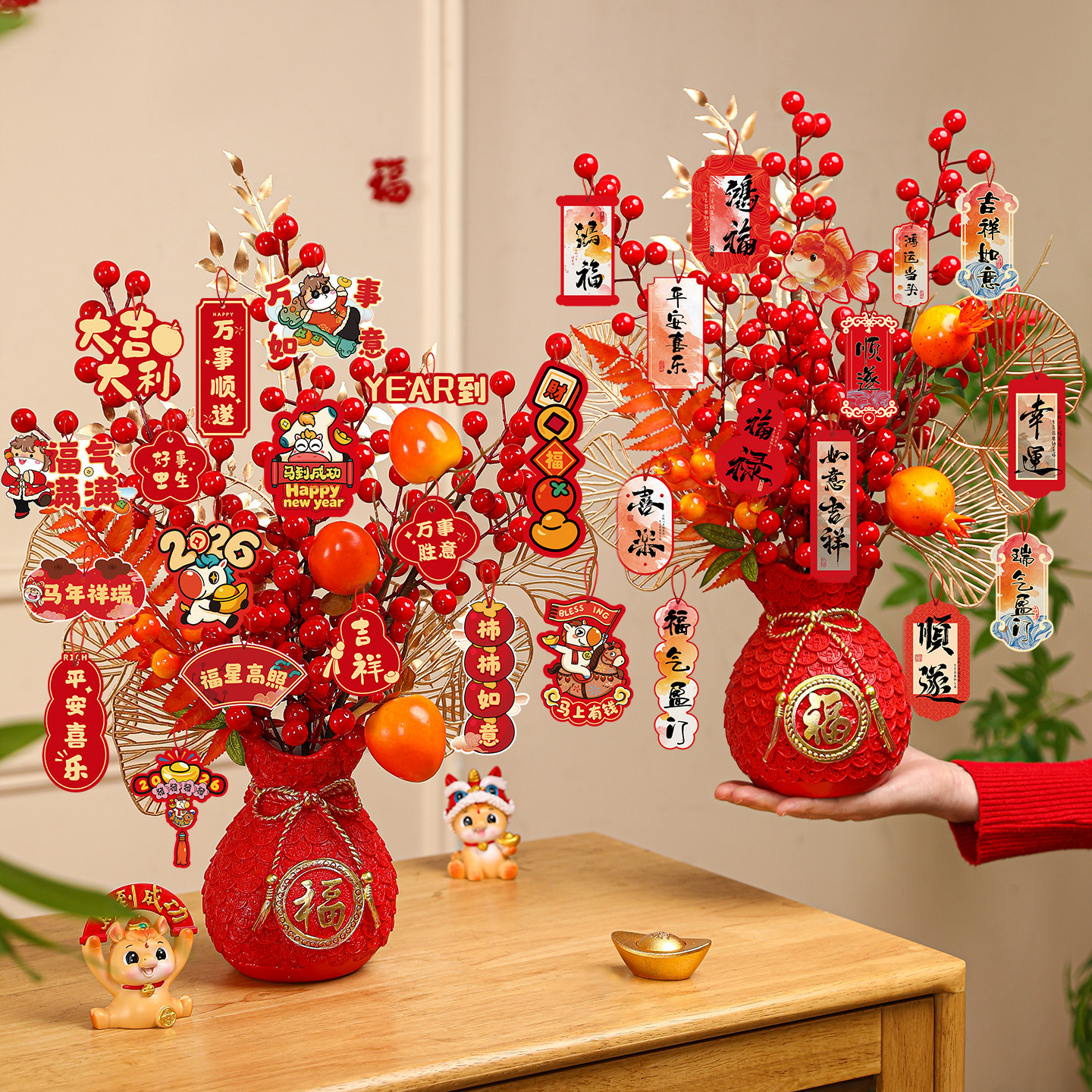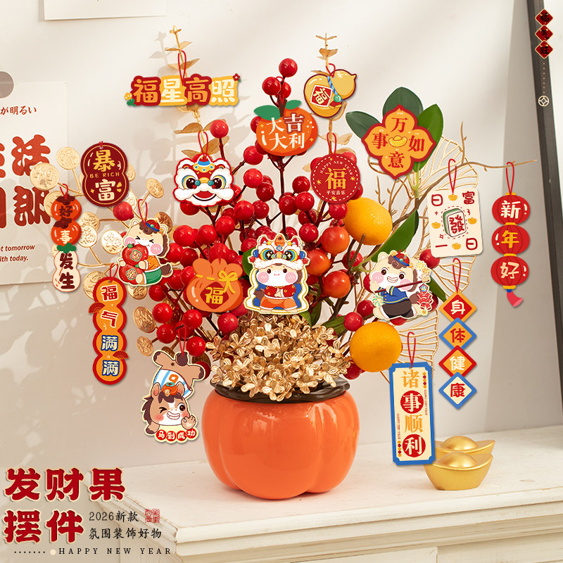 2026新年装饰品发财果摆件桌面家里客厅挂件马年过年春节氛围布置