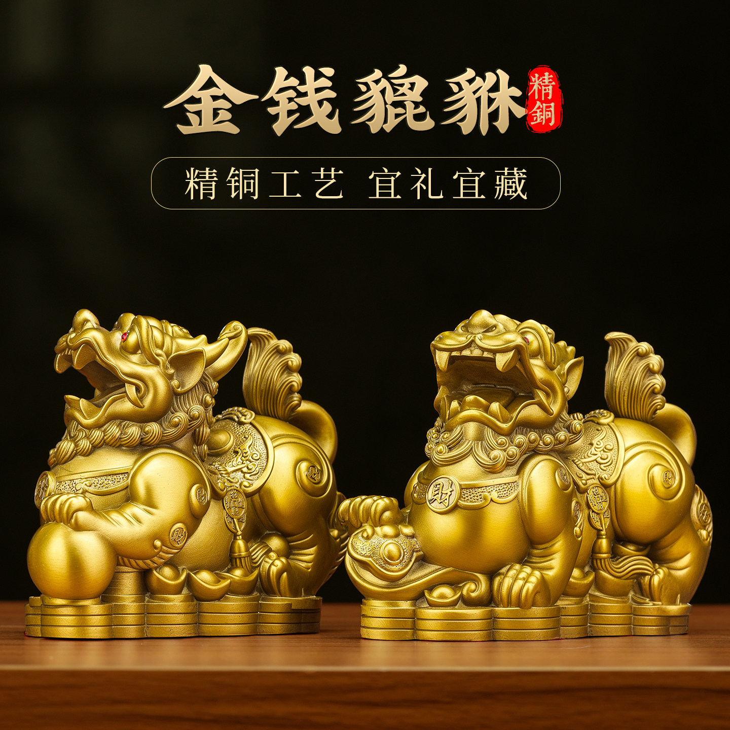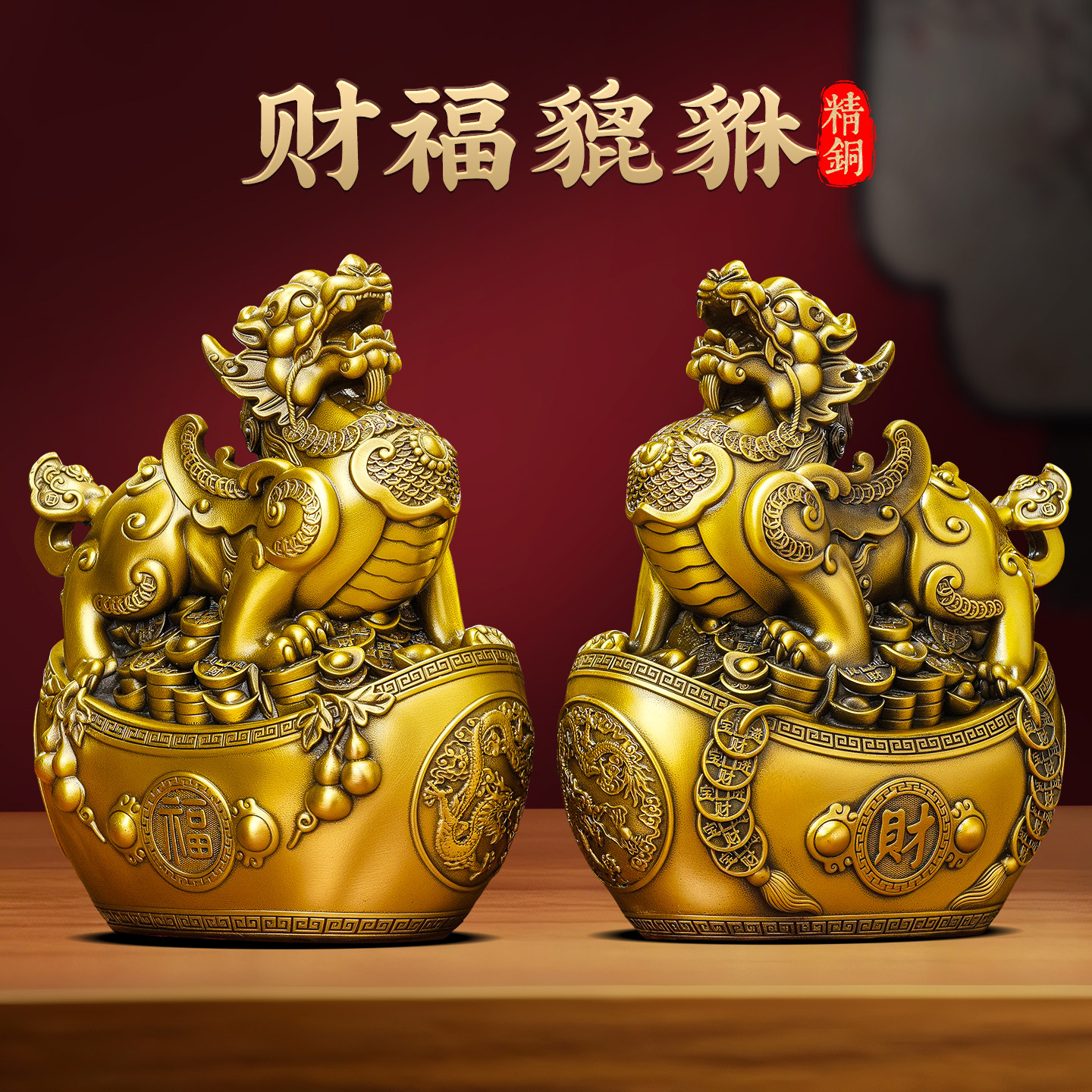 黄铜貔貅摆件一对镇宅客厅玄关聚财工艺品家里纯铜店铺开业装饰品