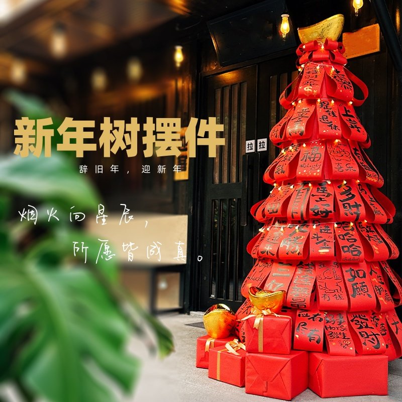 新年装饰品过年场景氛围布置春节蛇年屋内家里客厅卡纸新年树摆件