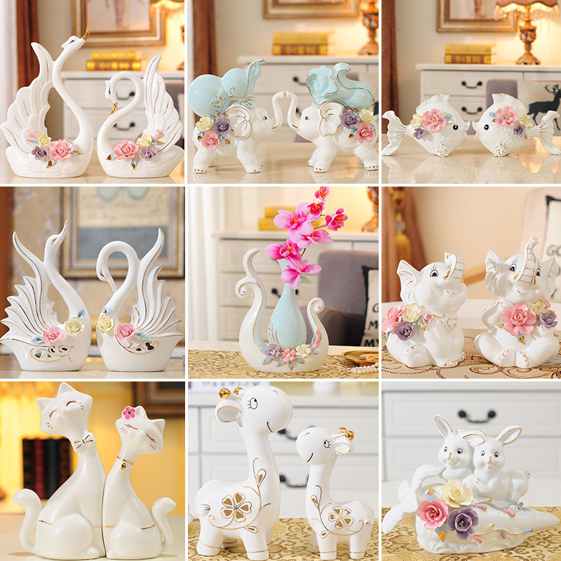 装饰品摆件天鹅客厅电视柜卧室一对小摆设结婚礼物送新人桌面家里