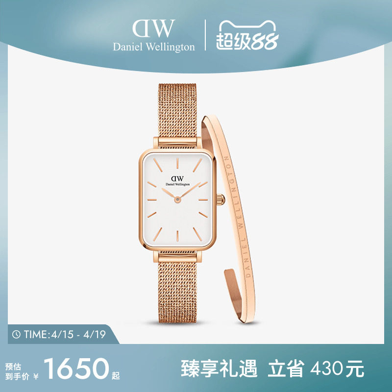 DW手表套装女QUADRO复古麦穗小方表手镯套装时尚叠戴高级感礼物