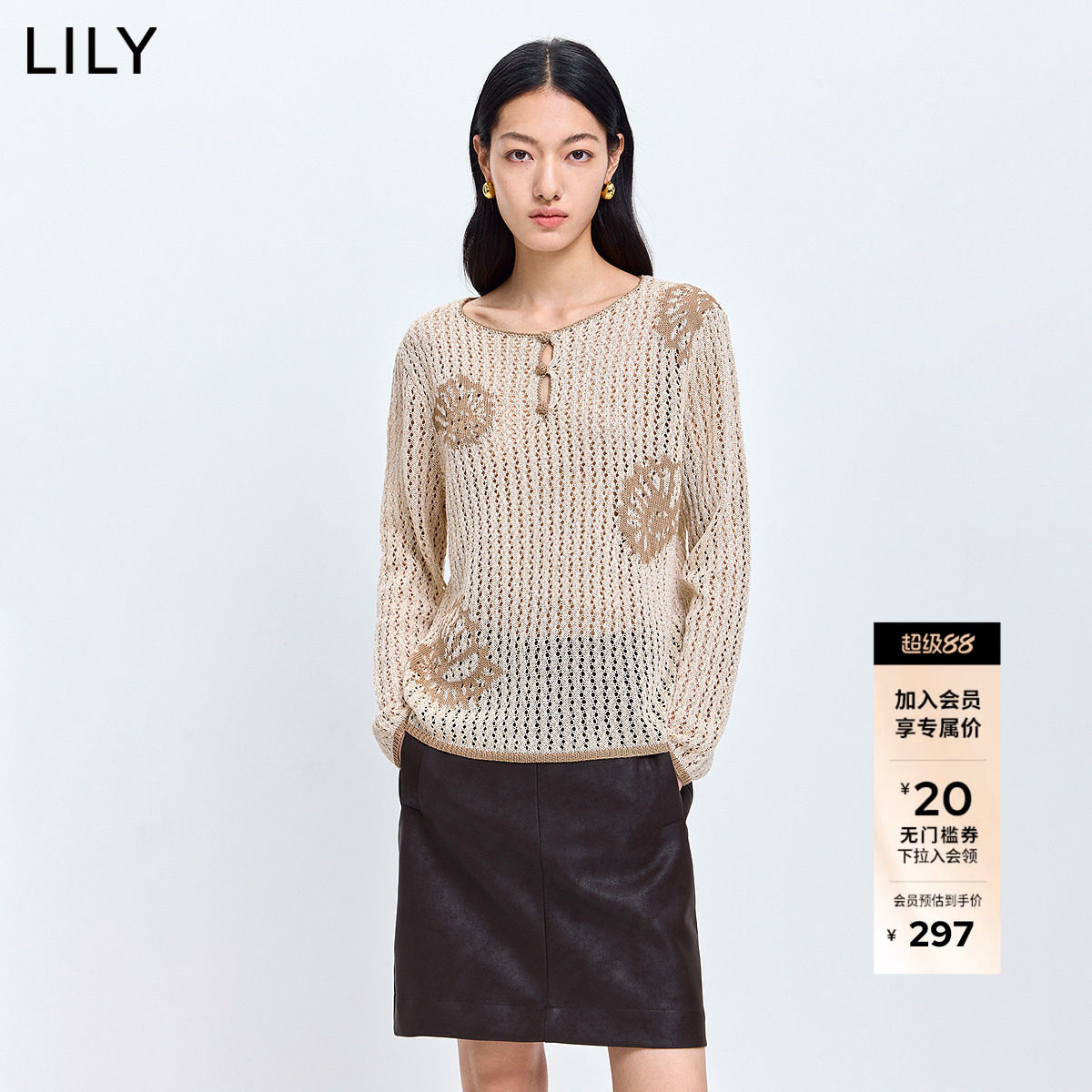 LILY2026春新款女装撞色提花宽松休闲通勤百搭长袖针织衫毛衣罩衫